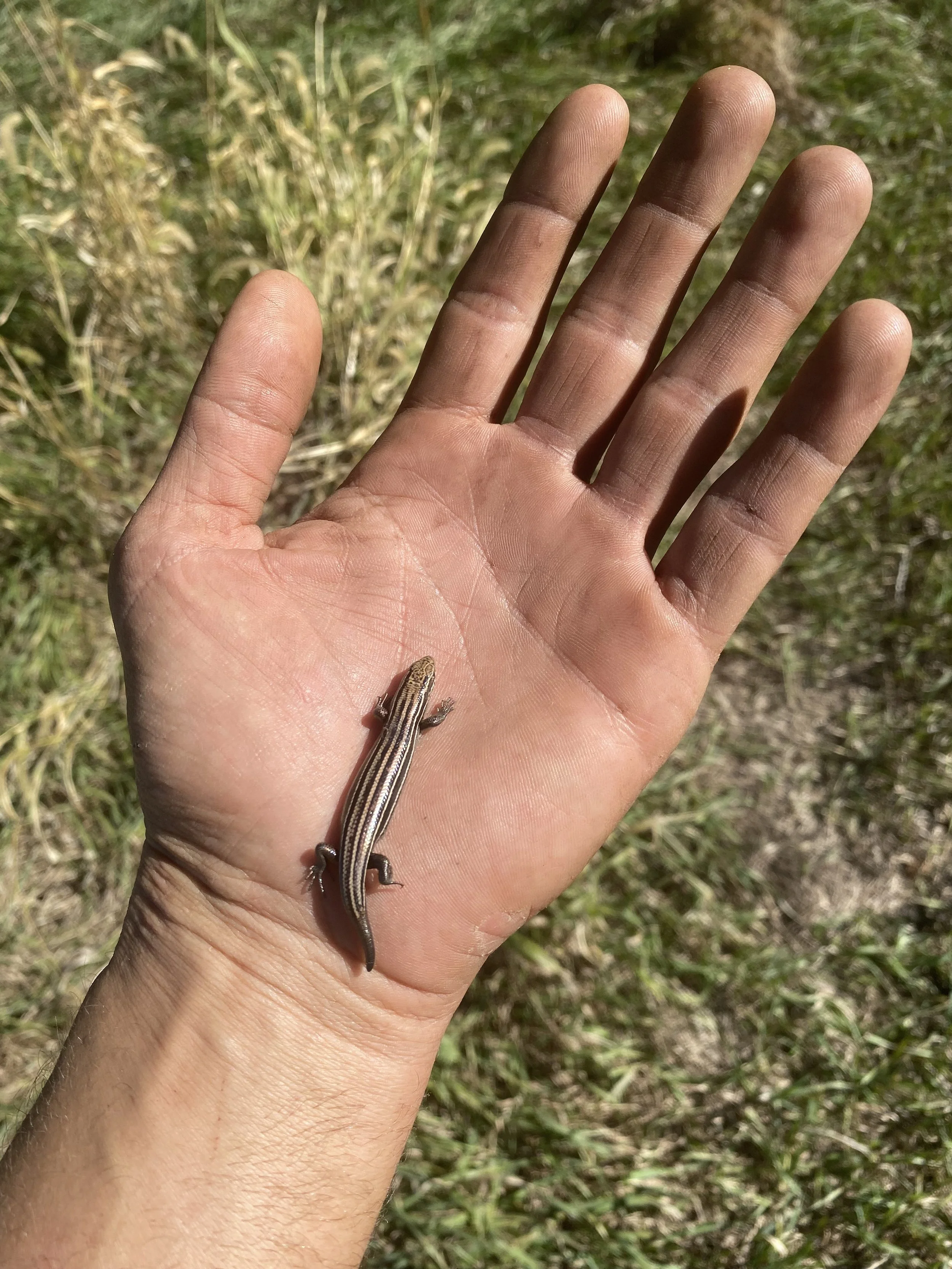 This five-lined-skink was found while planting out a plum grove on a swale system installed near the Platte River - in Saunders County.